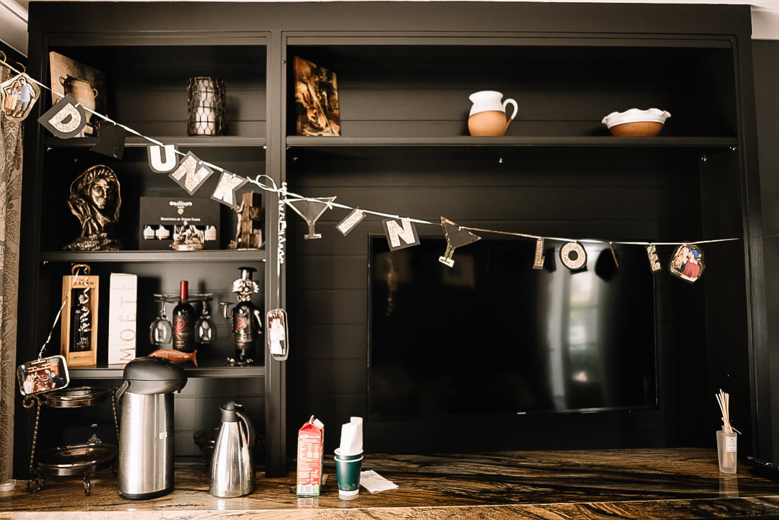 The groom’s father also received a lovely wooden box of Martell cognac from the bride as a wedding morning gift. There were gifts for the mother of the groom too of course! Next, I got the groom and groomsmen together in a photo while they shared a toast. I also captured the vintage VW getaway bus decorated for the wedding and other lovely wedding morning details.