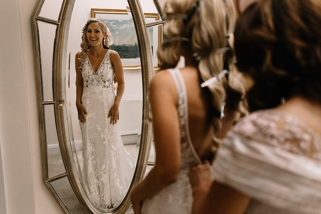 After the groom, the bride and the bride’s squad were next on my list. I started by documenting the special moments shared as they had their hair and makeup done. I also captured things like the wedding dress, brides’ shoes and earrings.